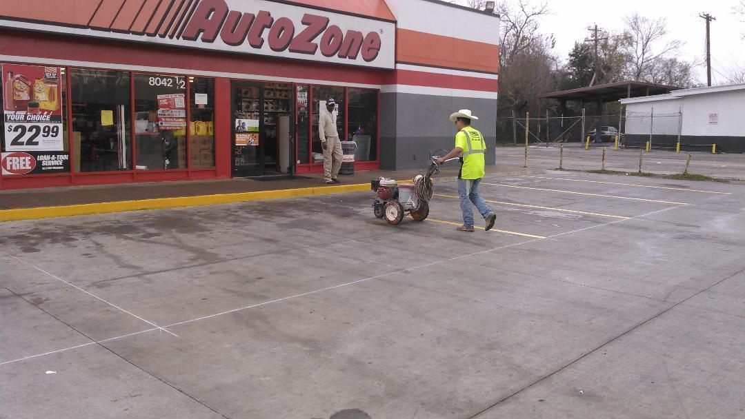 Our employees receive specialized training focused on quality and safety. Every striping project is measured and laid out by a skilled crew leader. The result is lines that are even, centered and straight every time. Our skill and experience allow us to complete even the most challenging projects on time and to the highest standards such as parking garages, turn lanes, airports, malls, athletic courts, industrial warehouses, and more. We also only use the best striping machines made by GRACO and paint from Sherwin Williams.