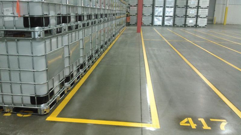 When considering a warehouse floor striping project, the first thing to decide is how long you would like your striping/markings to last. Many of our warehouse floor striping customers have issues preventing them from putting down a product that will be hard to remove years later. One example might be a short lease on the property itself, while another might be a known reconfiguration soon or a multi-use area that can change many times over the year. Whatever the situation is, it’s important to think about these factors before deciding what kind of durability you are looking for.